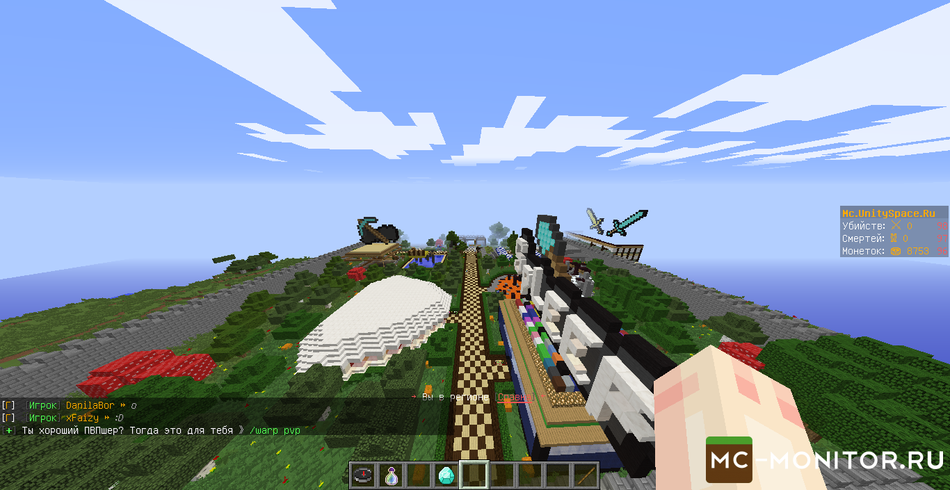 UnitySpace - это сервер Minecraft, который не требует лицензии, на сервере есть PVP, экономика, свадьбы, работы, призовой паркур, война кланов и ещё многое другое.