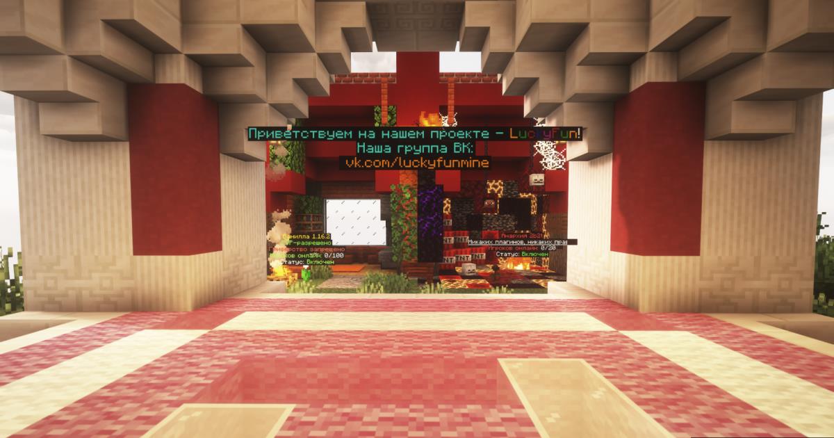 6. Херобрин - великая легенда мира Minecraft бродит по миру и создает различные ловушки и опасности игрокам, он может как помочь вам, так и навредить, будьте аккуратны... Это далеко не весь список плюшек нашего сервера, из-за которых вы захотите играть именно у нас! С уважением, команда LuckyFun