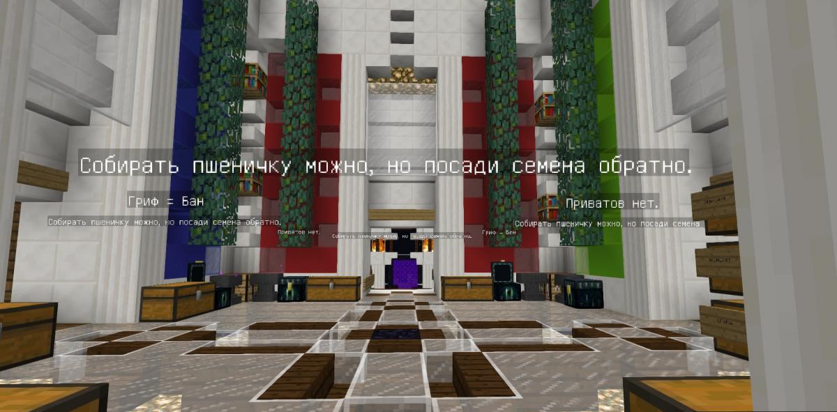 Ванильные миры без приватов, донатов, креатива и с мобами. Без читов/админок/дюпов/грифа. - Отсутствие донатов. Полностью. Купить привилегии невозможно, все игроки равны.
