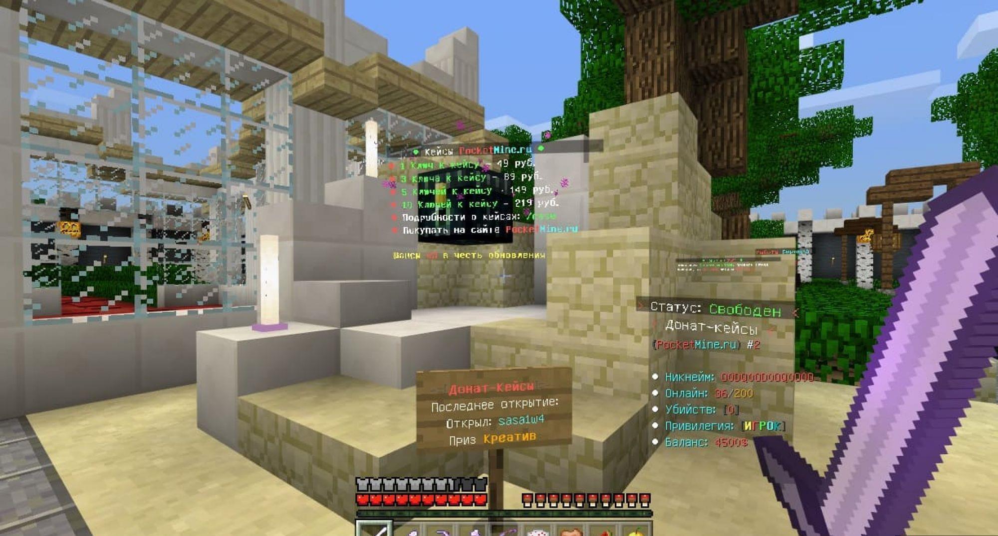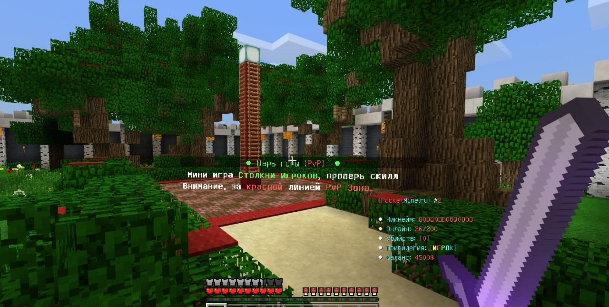 ? [i]Крутое обновление на сервере добавлено оружие, скупщик, аукционы, супер кланы, много топов где можно занять своё место[/i]? [i]Обновление каждый месяц, добавляем крутые штуки, ценим игроков, качественные плагины[/i]? [i]Нет обмана на донат, сервер честный и не кидает игроков на команды! [/i]? [i]Создатель сервера ЮТУБЕР, играет с игроками и проводит разные ивенты[/i]? [i]Подарки новичкам, у нас тебе не будет скучно ведь мы заботимся о новых игроках, и не забываем про тех кто играет с нами более 2-3 лет![/i]? [i]Красивое оформление сервера, удобная игра, сервер делался с 0 и у нас много разных плюшек которых нет на других серверах[/i]? [i]НЕТ ЛАГОВ! КАЧЕСТВЕННЫЙ хостинг позволяет нам убрать все лаги, и сделать игру более приятной![/i]АЙПИ : [b]pe.PocketMine.ru[/b] | Порт: [b]19132 [/b]| Версия: [b]1.1.0/1.1.1/1.1.2/1.1.3/1.1.4/1.1.5/1.1.6/1.1.7[/b]Скидка на привилегии более 50%, наш сайт сервера:https://PocketMine.ru/?from=mm