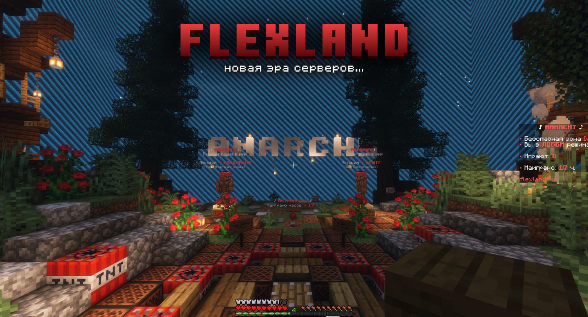 Мы не идем за "стадом"! Мы не тот проект, который продает "Админки" и "Опки" за 99 рублей! Да, да, мы работаем в минус, стараясь ради вас - изо дня в день, без выходных, делая: качественные обновления, интересный видео-контент, и проводим онлайн-эфиры. Но к сожалению, большинство аудитории не привыкло видеть хорошие, качественные сервера и ведутся на сплошной стандартный обман любых других проектов, по этому игроков у нас не так много и, в основном, мы держимся за счет видео-роликов, стримов и спонсоров... Если вы вдруг, дочитали до этого момента, значит вы один из тех, который внимательно выбирает сервер и изучает про него всю информацию, прежде чем зайти, а это значит, что, вероятнее всего, вы пытаетесь найти качественный проект - где не будет: навязчивой рекламы донат привилегий, всяких, различных "опок" за "69 рублей", супер-мега "скидок" в "99% только сегодня". Проект FLEXLAND еще довольно-таки новый и активно дорабатывается, по этому, мы часто проводим онлайн-презентациях, где рассказываем об обновлениях и будущем проекта, так же вы можете предлагать свои идеи или рассказывать о найденных ошибках прямо в эфире. Как говориться, чтобы изменить мир, нужно начать с себя - мы одни из тех, кто хочет поменять взгляд аудитории на ру-майн сервера в лучшую сторону, и я надеюсь, что когда-нибудь, мы сможем этого добиться.